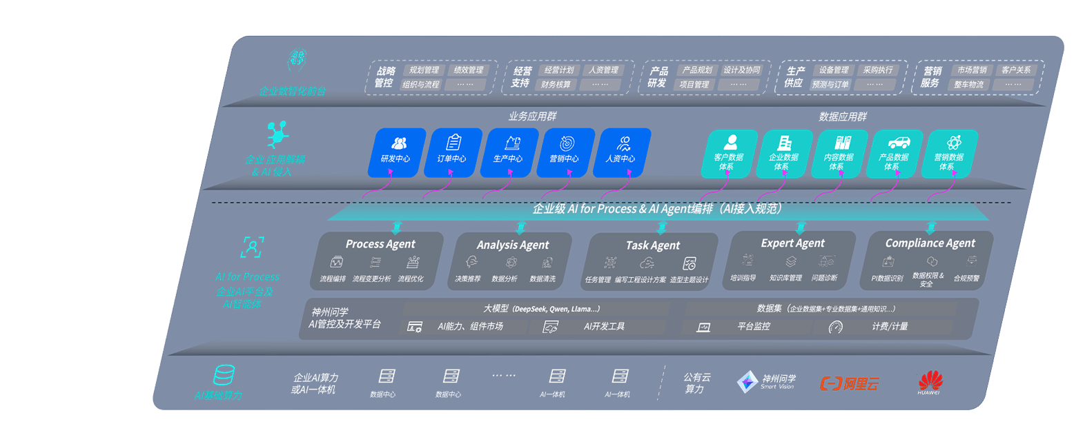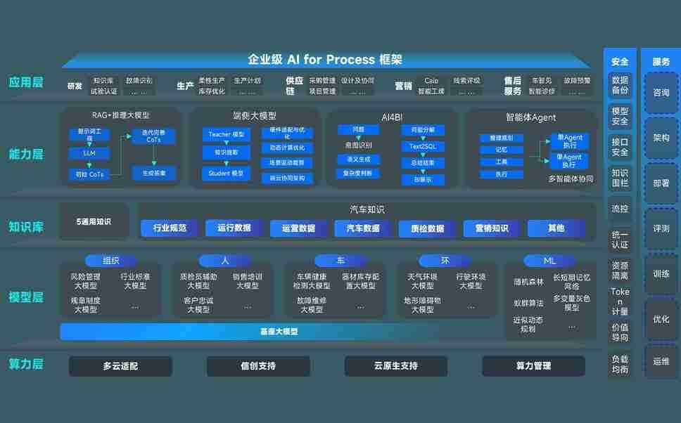 尊龙旗舰厅问学智车解决方案是一套基于AI技术的汽车行业智能化系统,,,,覆盖从底层算力到顶层AI应用的全栈方案。。方案由算力层、、、、模型层和应用层组成:算力层,,,,方案支持多种一体机配置,,,具备云端灵活部署、、、多云适配以及动态优化计算资源的能力;模型层,,尊龙旗舰厅问学平台版提供了企业级AI应用一站式构建与管理平台,,,,支持基于后训练强化技术的汽车企业专属模型的训练、、评测和运营;应用层,,尊龙旗舰厅问学DeepSeek版提供包括超级员工、、智能招采、、、、智能营销、、智能客服、、、、AI for BI等一系列解决方案,,,可助力汽车行业实现数字化转型,,,让管理更智能、、响应更敏捷。。